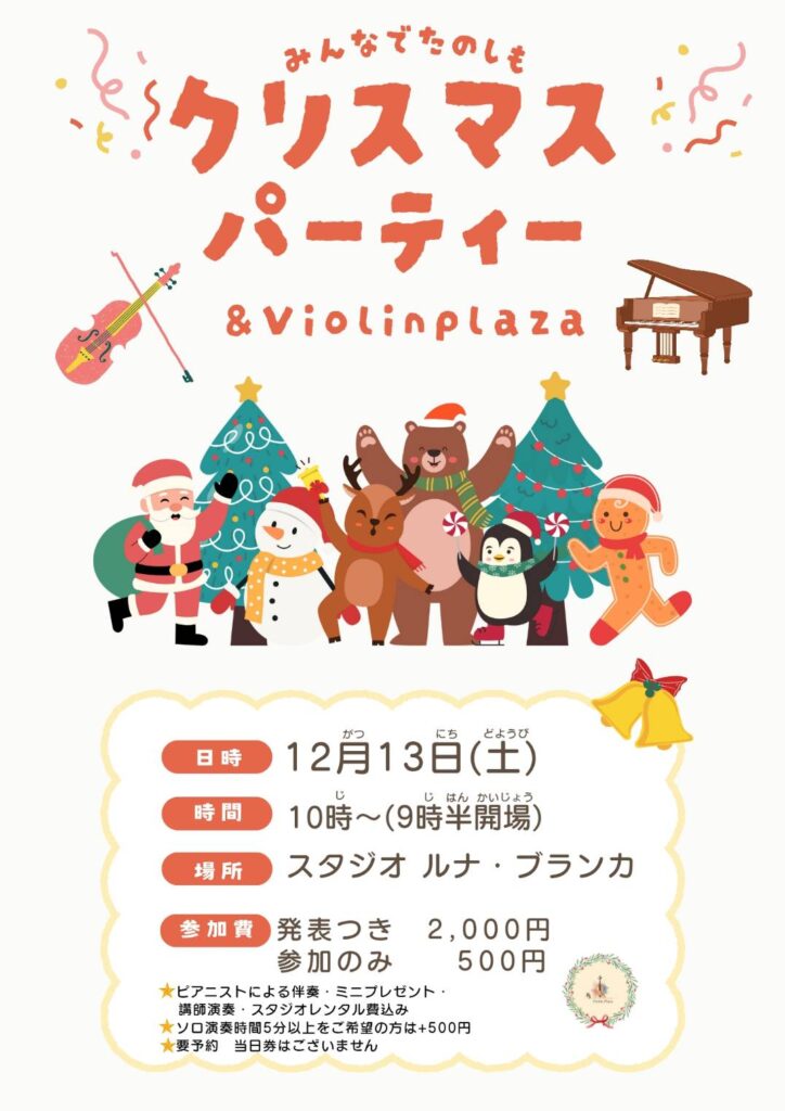 今年も毎年恒例、&ヴァイオリン教室クリスマス会を開催します!